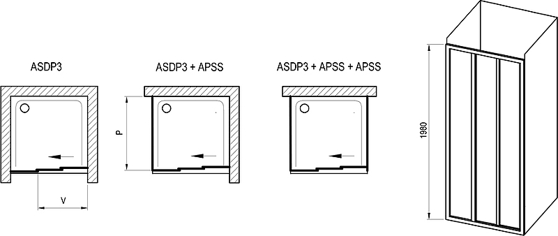 - Ширина двери регулируется: 1270 - 1310 мм.