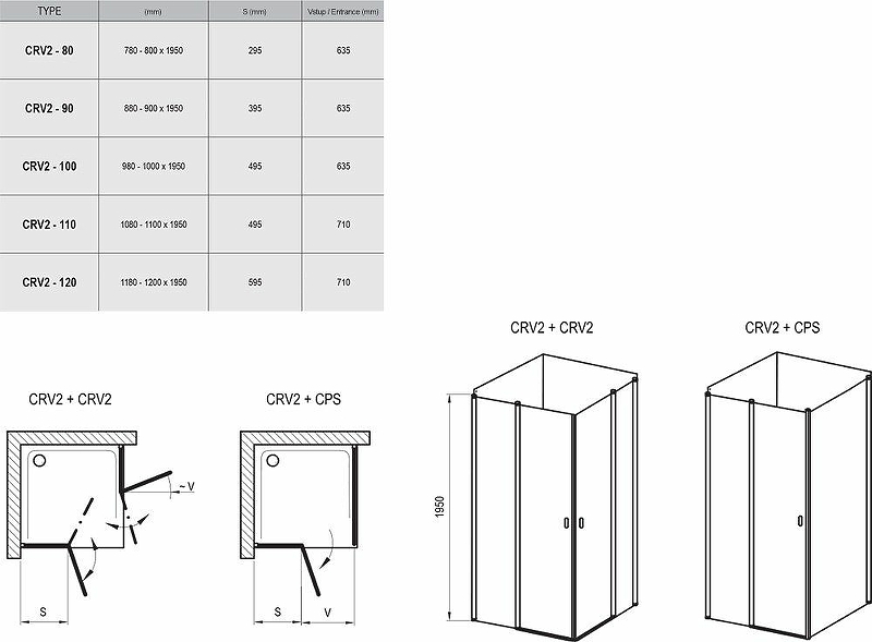 Душевая дверь Ravak Chrome CRV2-90 1QV70100Z1. Для комплектации душевого уголка необходимо купить 2 изделия CRV2 или 1 изделие CRV2 и неподвижную стенку CPS!
