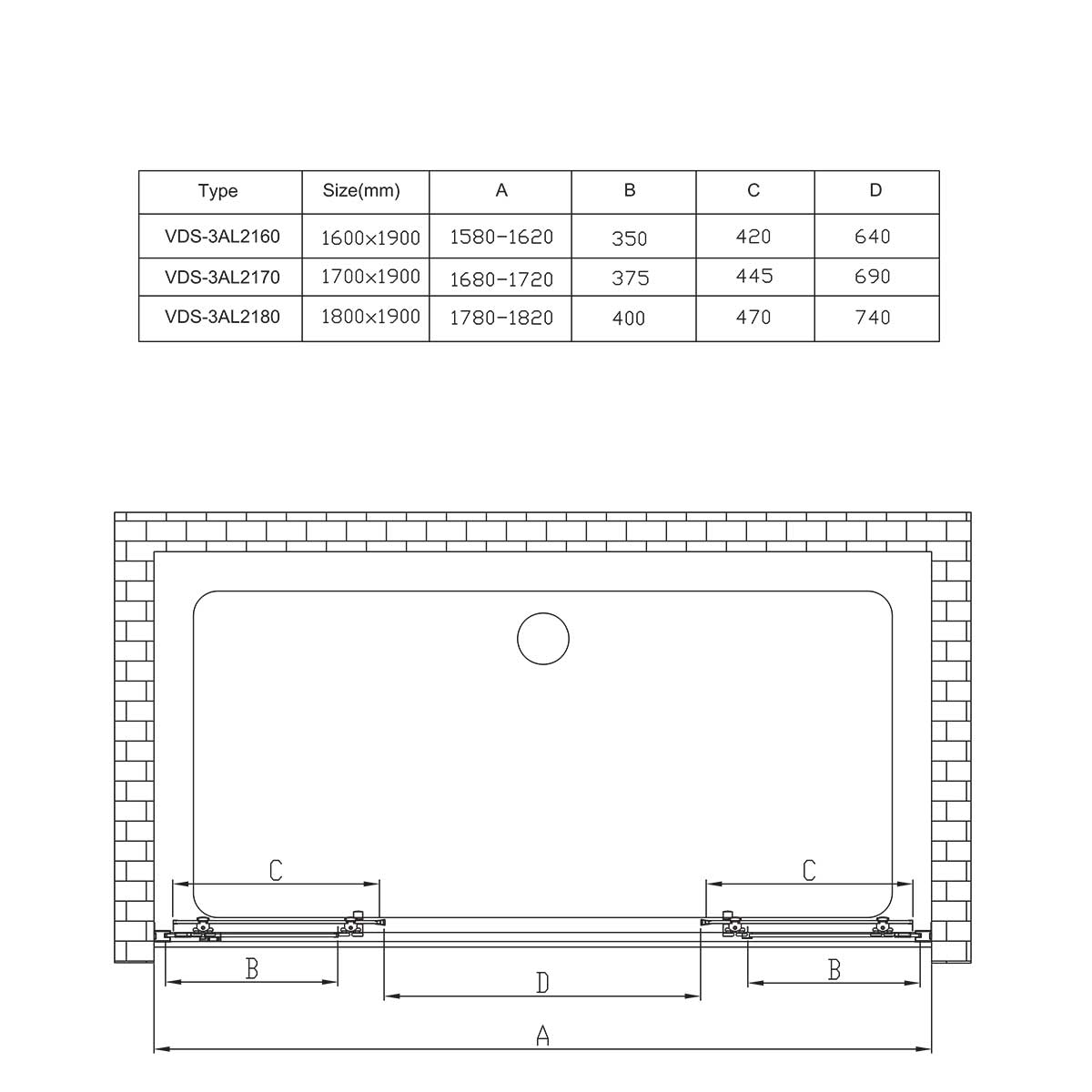 Душевая дверь Alpha VDS-3AL2170CL, 1700, хром, стекло прозрачное