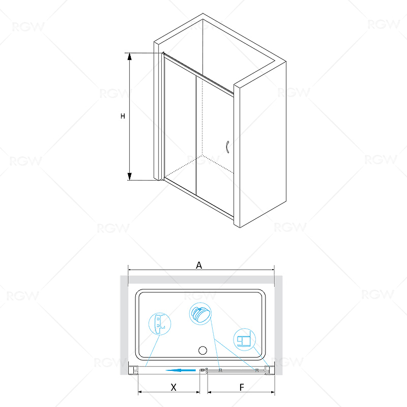 Душевая дверь RGW Passage PA-016 160 350801616-21 состоит из 2-х секций, одно неподвижное стекло и раздвижная дверь от стены.