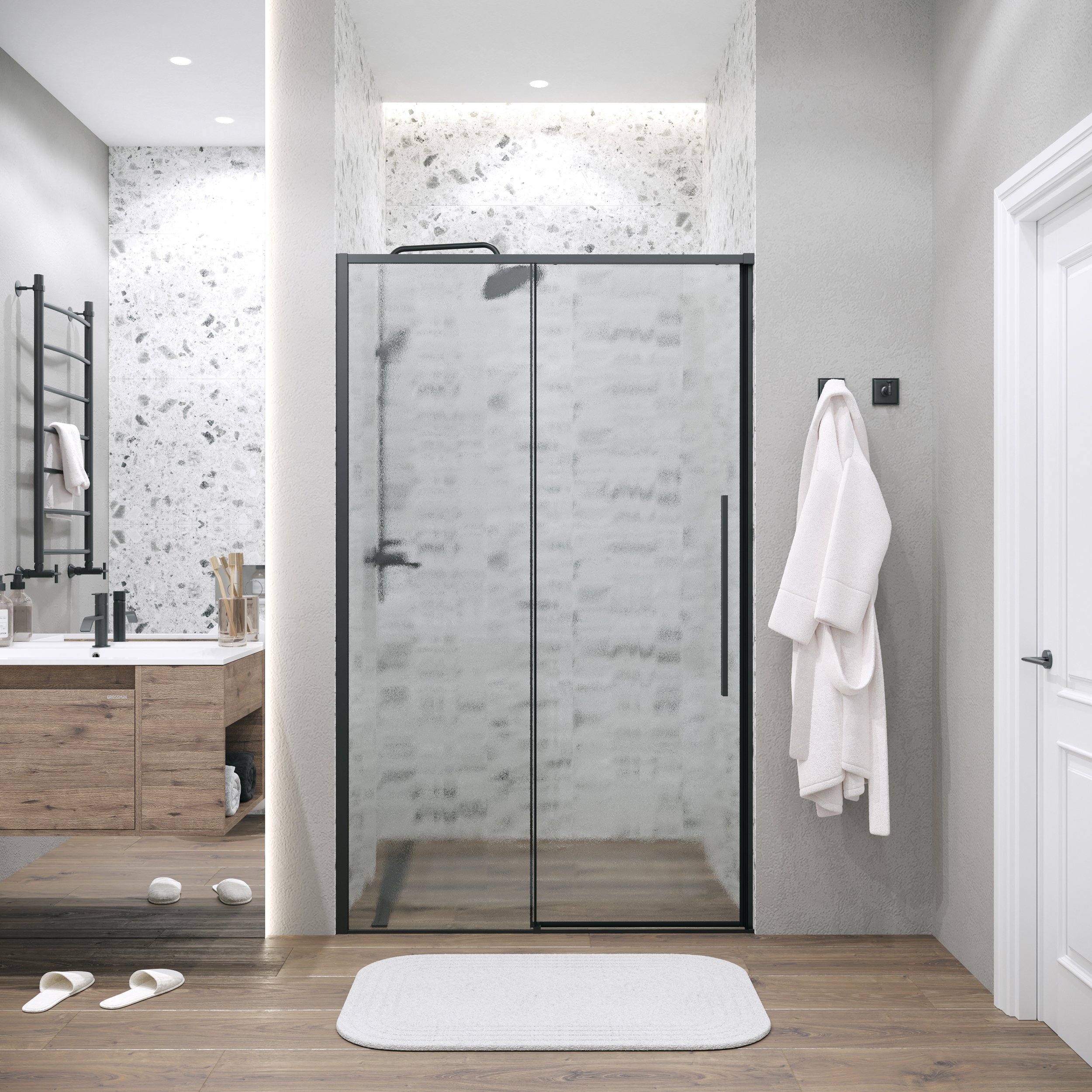 Дверь в нишу 100.K33.01.130.21.02 Galaxy (130*195) черный матовый, стекло шиншилла, 1 место