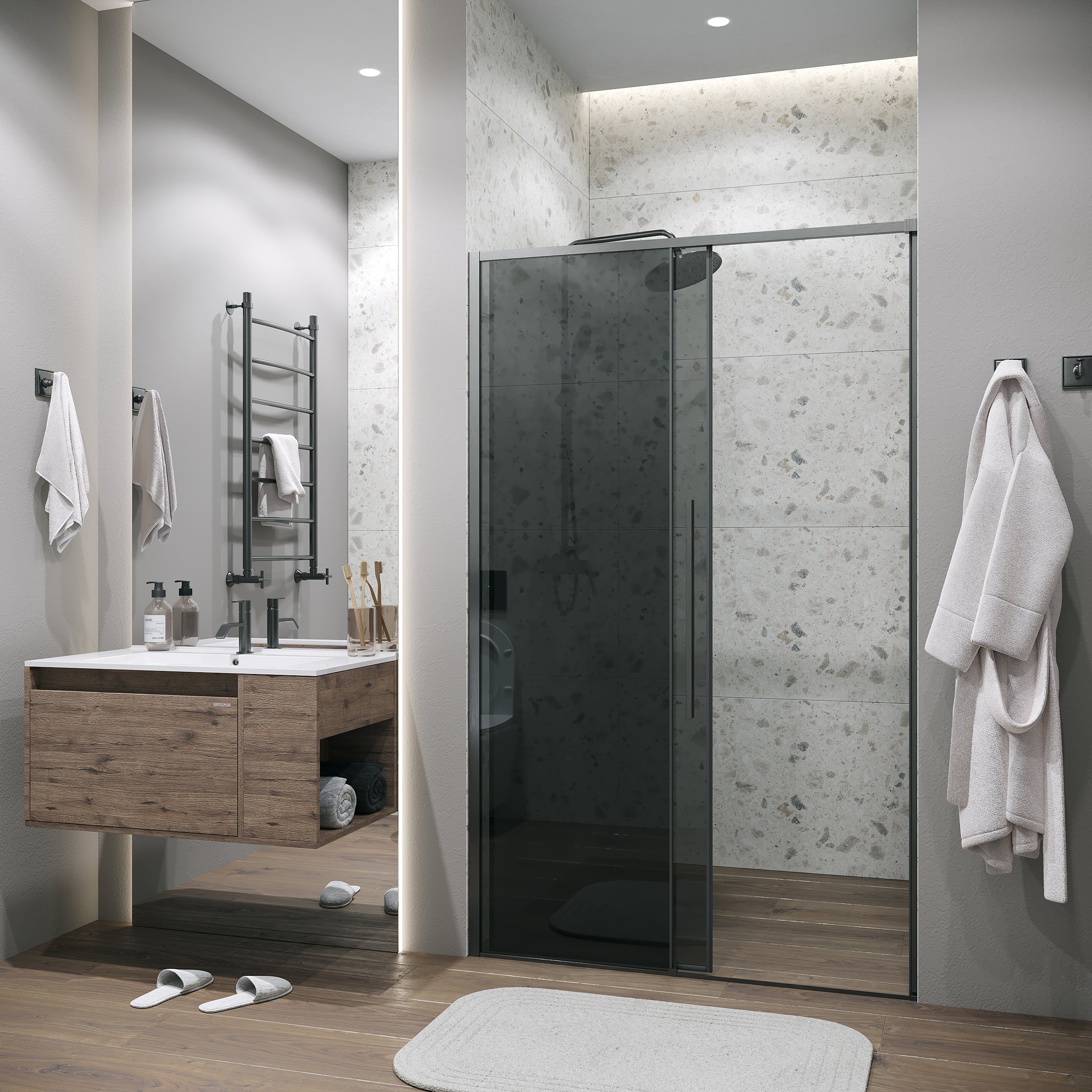 Дверь в нишу 100.K33.01.140.42.10 Galaxy (140*195) графит сатин, стекло тонированное, 1 место