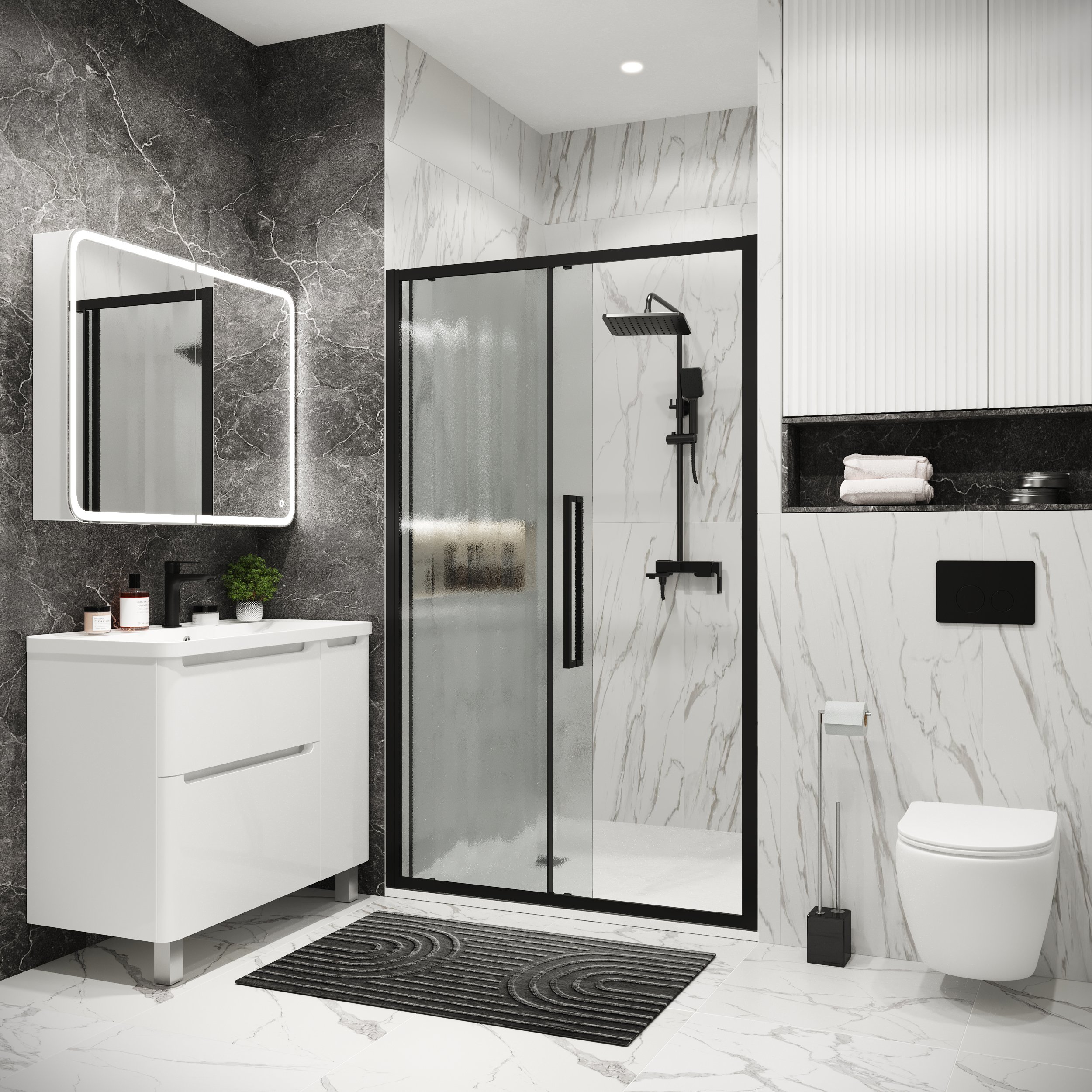 Дверь в нишу 100.K33.02.100.21.02 Cosmo (100*195) черный матовый, стекло шиншилла, 1 место