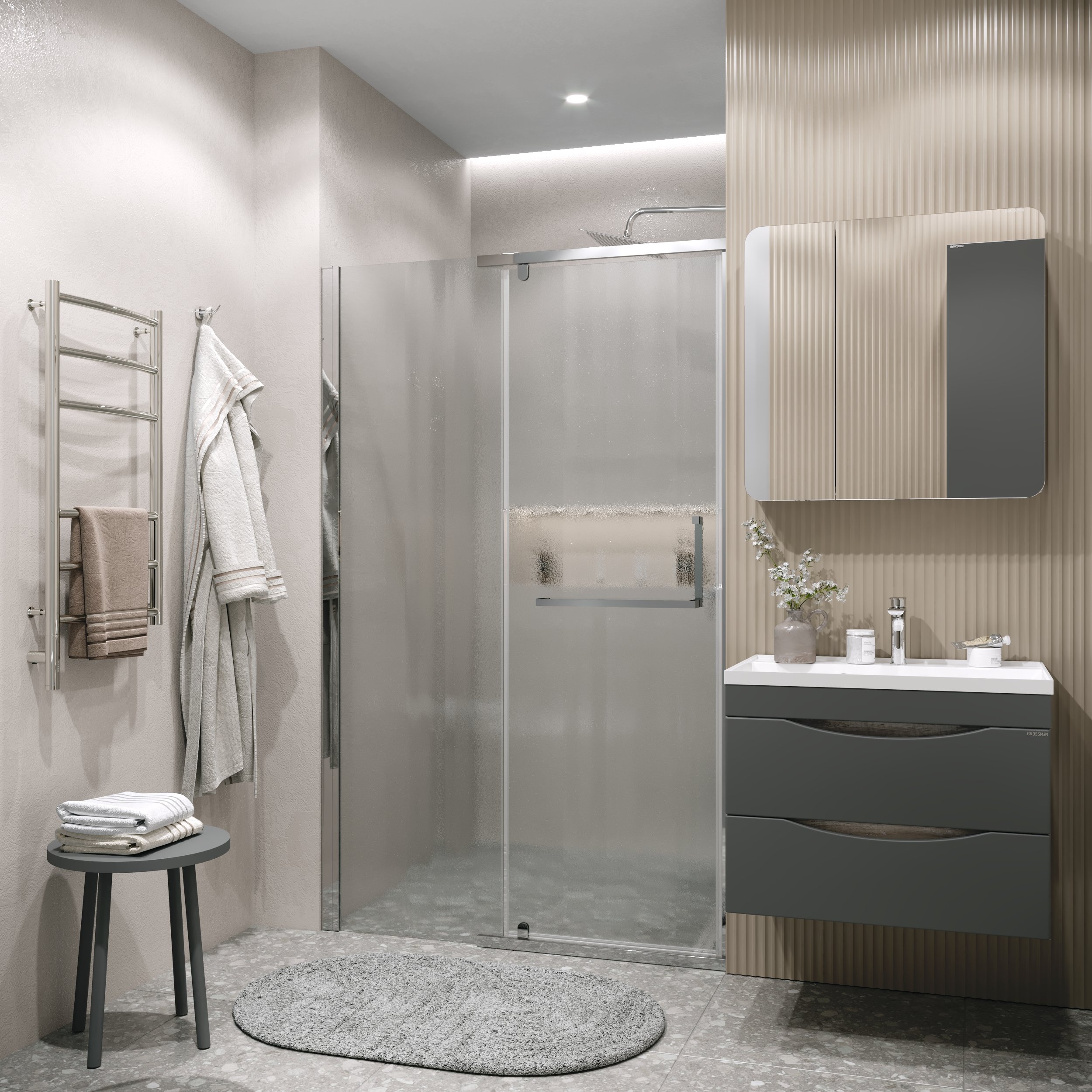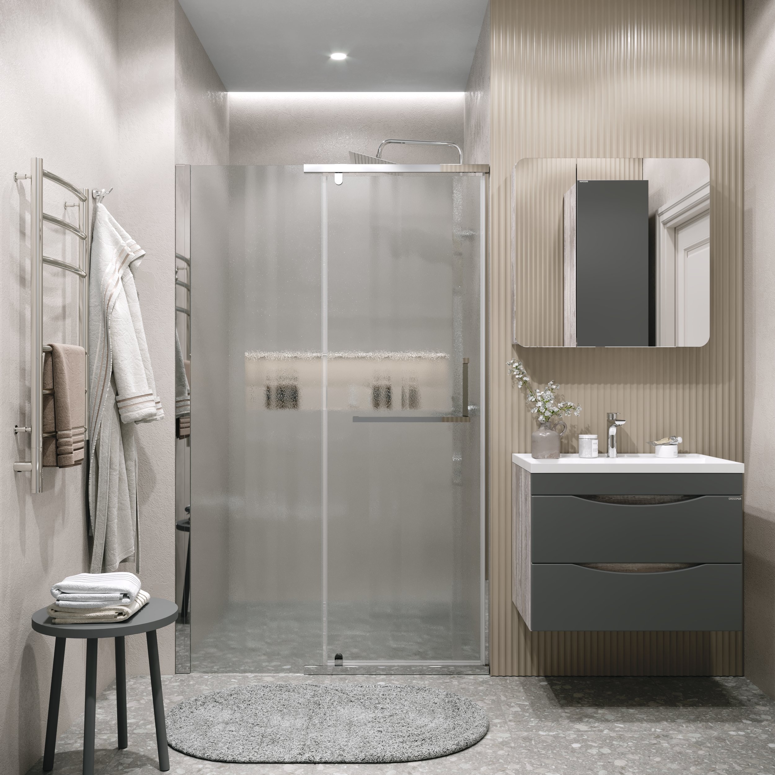 Дверь в нишу 100.K33.03.100.10.02 Pragma (100*195) хром, стекло шиншилла, 1 место