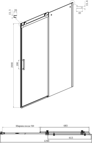 Душевая дверь в нишу Ambassador Benefit 19021202HB 130 см, профиль черный, стекло прозрачное