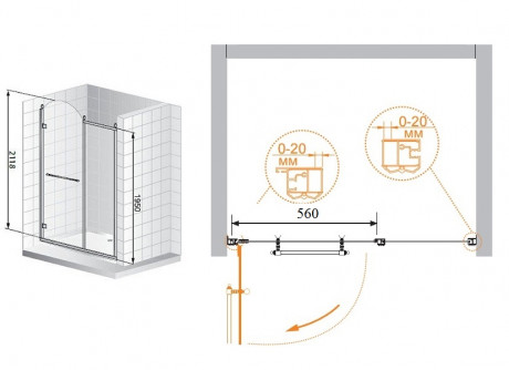 - Габариты с диапазоном регулировок, мм: (1175-1215)x2118