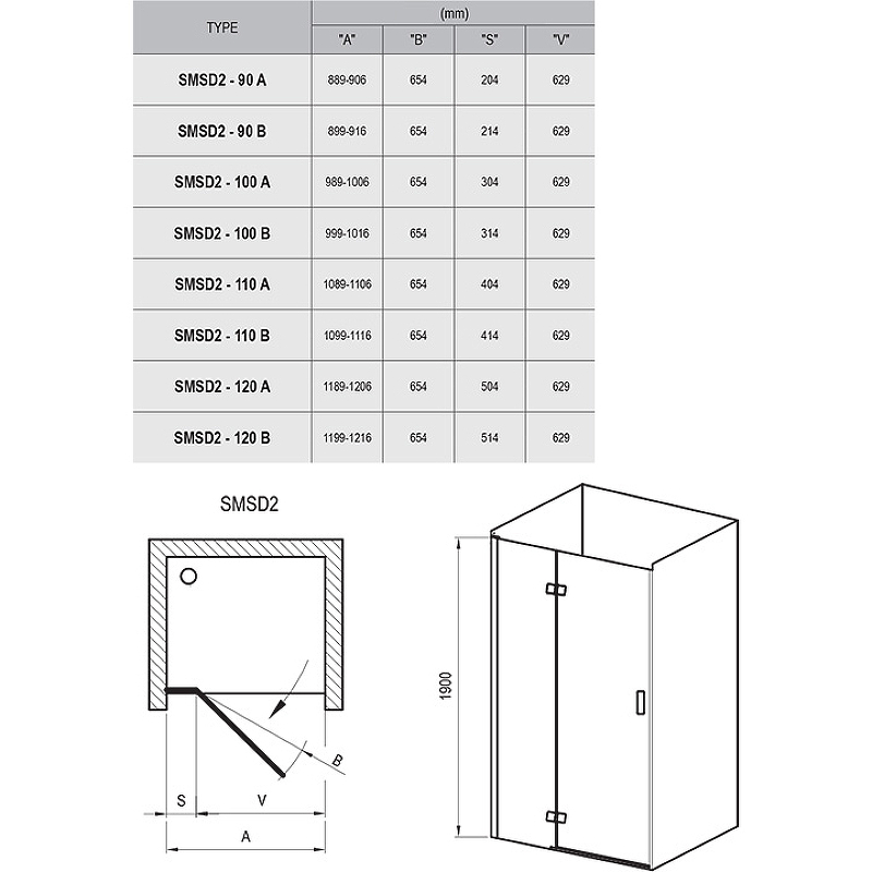 Душевая дверь Ravak Smartline SMSD2-90 A L 0SL7AA00Z1.