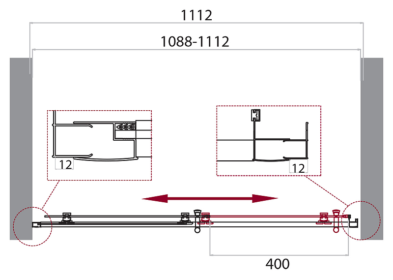 - Регулировка ширины предусмотрена за счет боковых профилей, что позволяет без проблем установить изделие даже при кривизне стен.