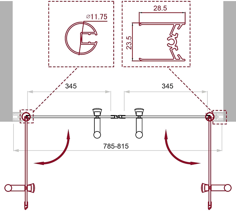 - Регулировка ширины предусмотрена за счет боковых профилей, что позволяет без проблем установить изделие даже при кривизне стен.