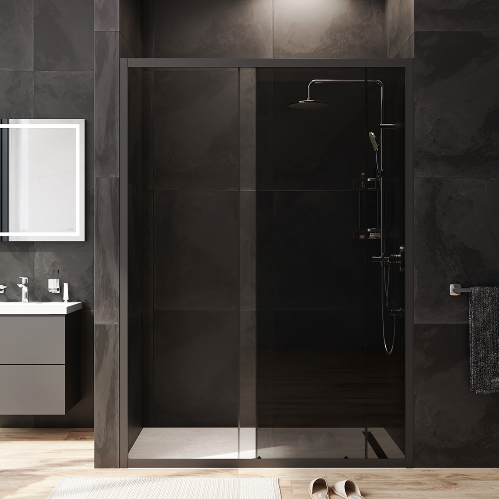 Душевая дверь AM.PM Gem 140 W90G-140-1-195BG профиль Черный матовый стекло тонированное-прозрачное