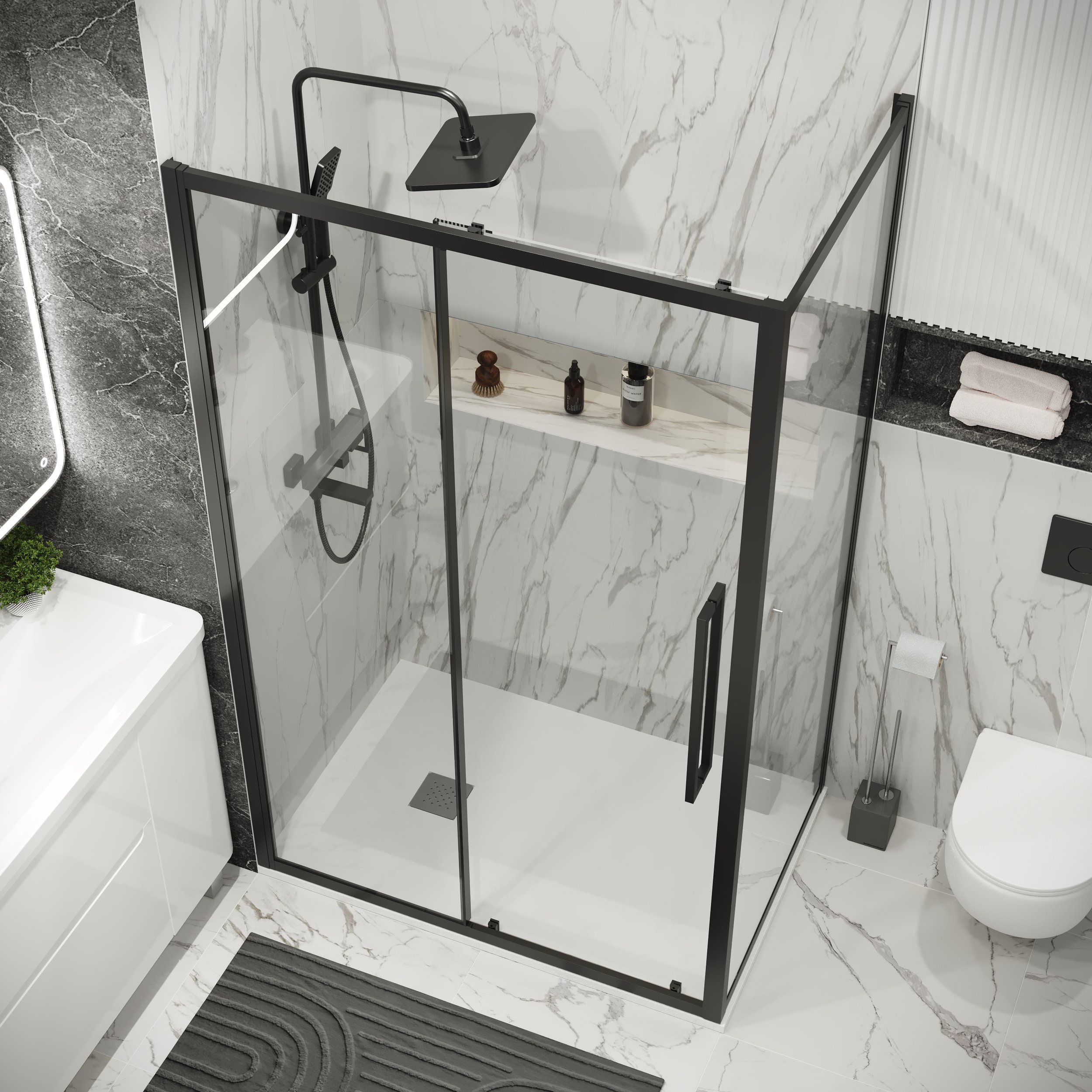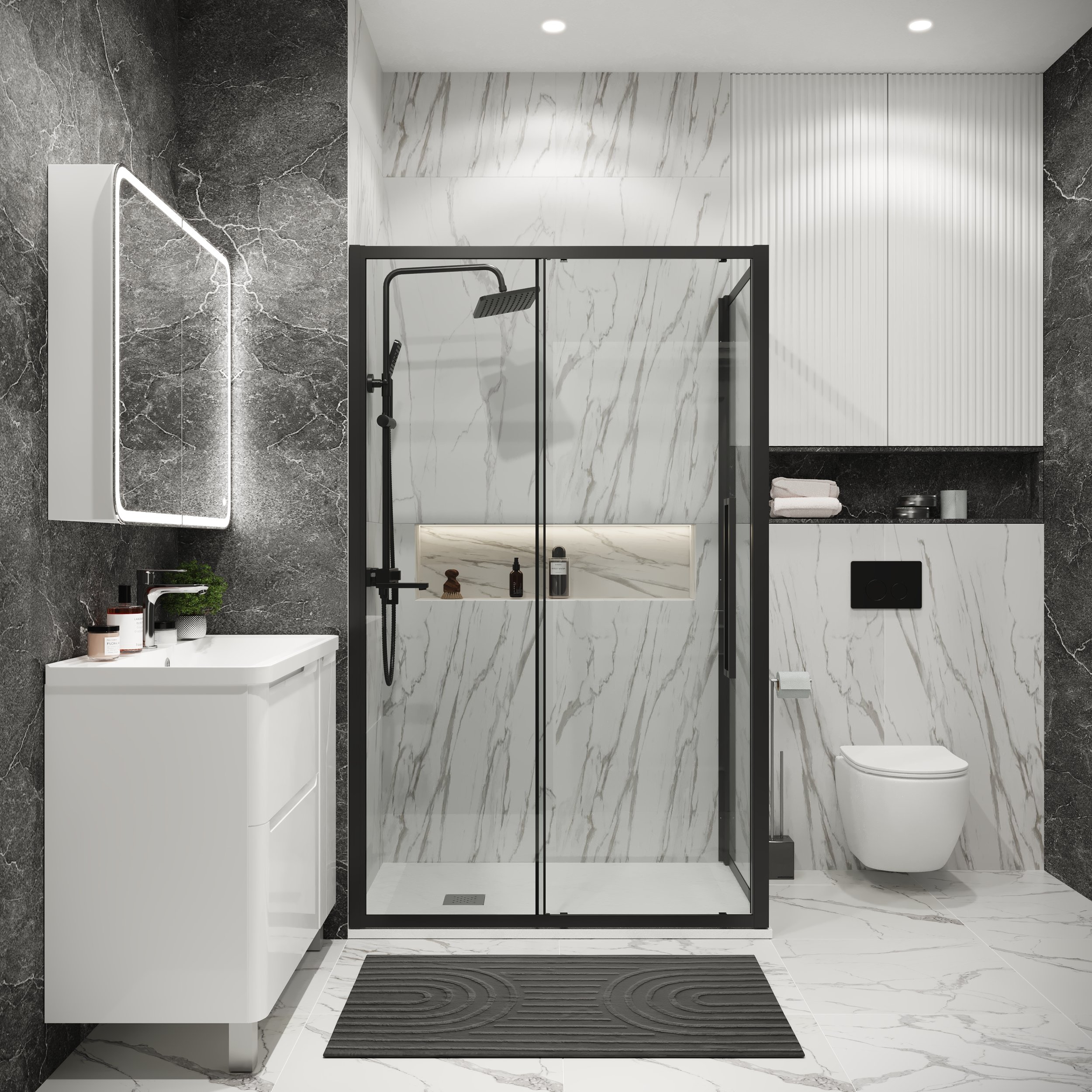 Душевая перегородка 200.K33.02.80.21.00 Cosmo (80*195) черный матовый, стекло прозрачное, 1 место