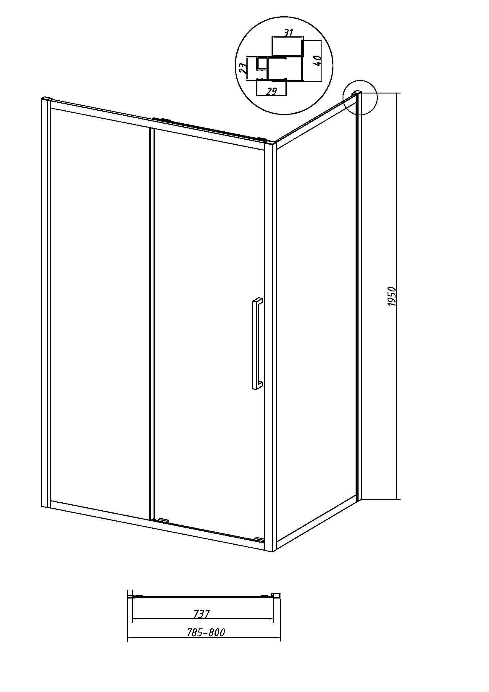 Душевая перегородка 200.K33.02.80.21.02 Cosmo (80*195) черный матовый, стекло шиншилла, 1 место