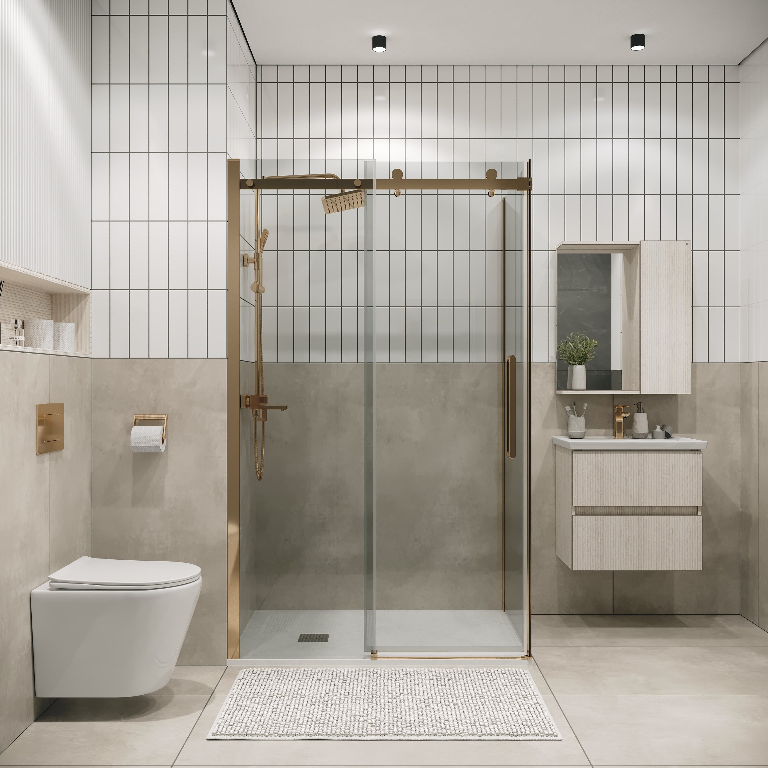 Душевая перегородка 200.K33.04.80.32.00 Classic (80*195) золото сатин, стекло прозрачное, 1 место