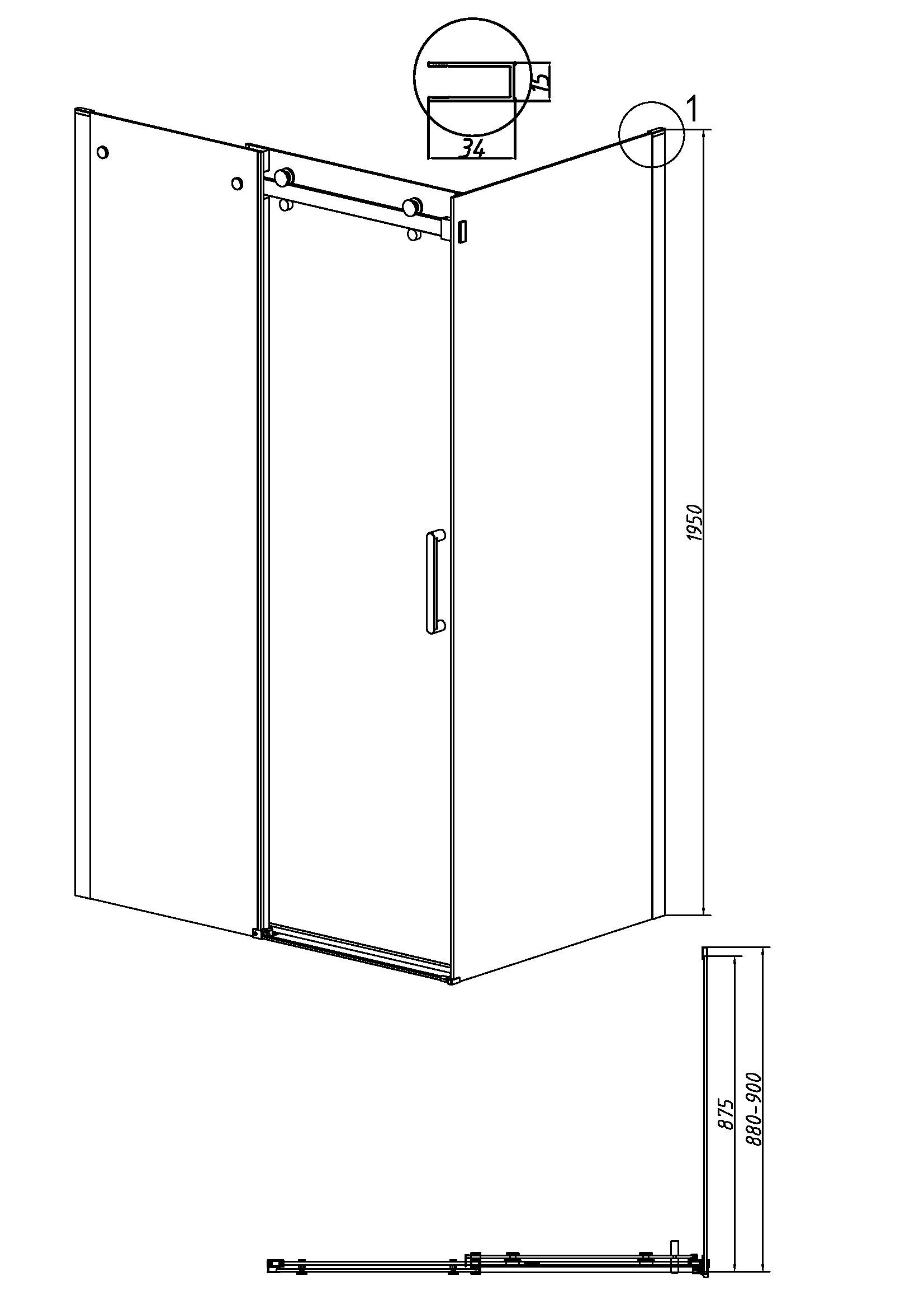 Душевая перегородка 200.K33.04.90.10.00 Classic (90*195) хром, стекло прозрачное, 1 место