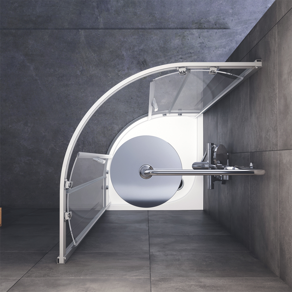 Система крепления профилей QuickFix - простой и быстрый монтаж душевого ограждения. Надежные хромированные двойные ролики – не менее 150 000 открываний. Прозрачное закаленное стекло толщиной 5 мм. Ручка из алюминия. Высота ограждения без поддона 1900 мм.