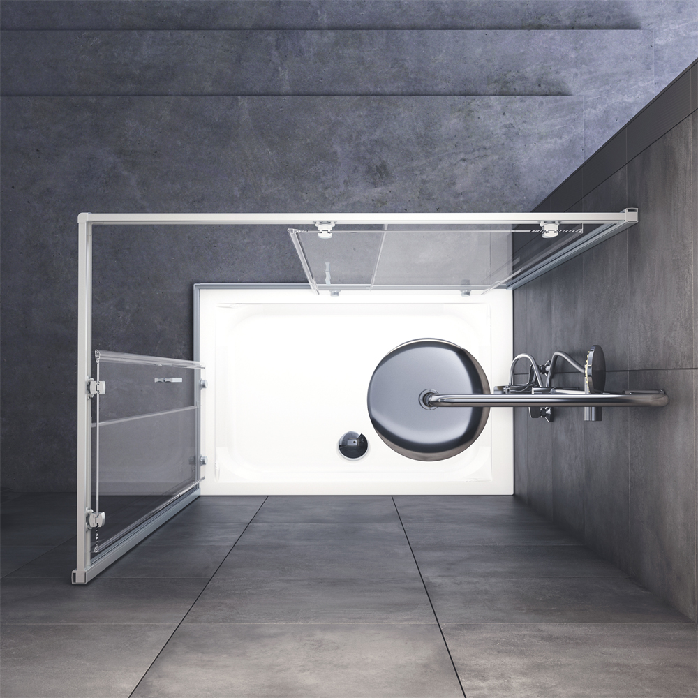 Высота 1900 мм, широкая входная зона и вместительное внутреннее пространство комфортны для людей любой комплекции. Двери ограждения оснащены металлическими роликами для плавного и бесшумного хода. В закрытом виде створки герметично блокируют мокрую зону, избавляя от необходимости уборки ванной комнаты после принятия душа.
