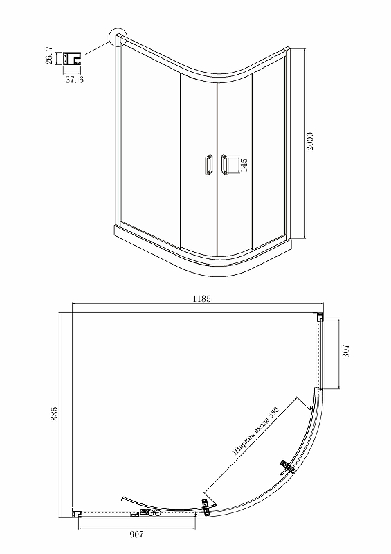 - Размеры (ШхВхД): 1185x2000х885 мм.