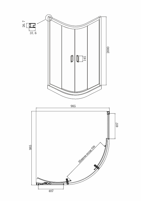 - Размеры (ШхВхД): 985x2000х985 мм.