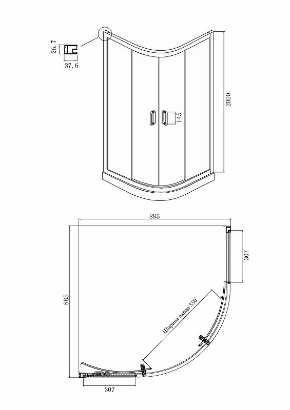 - Размеры (ШхВхД): 885x2000х885 мм.