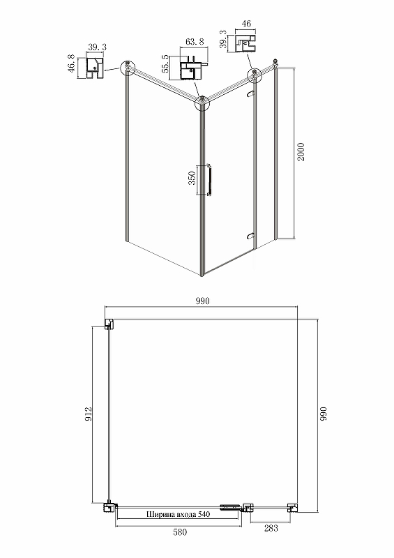 - Размеры (ШхВхД): 990x2000х990 мм.