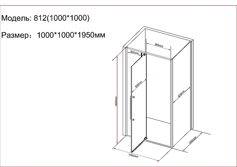 - Размеры (ШхВхД): 1000х1950х1000 мм.