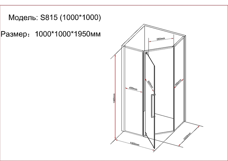 - Размеры (ШхВхД): 1000х1950х1000 мм.