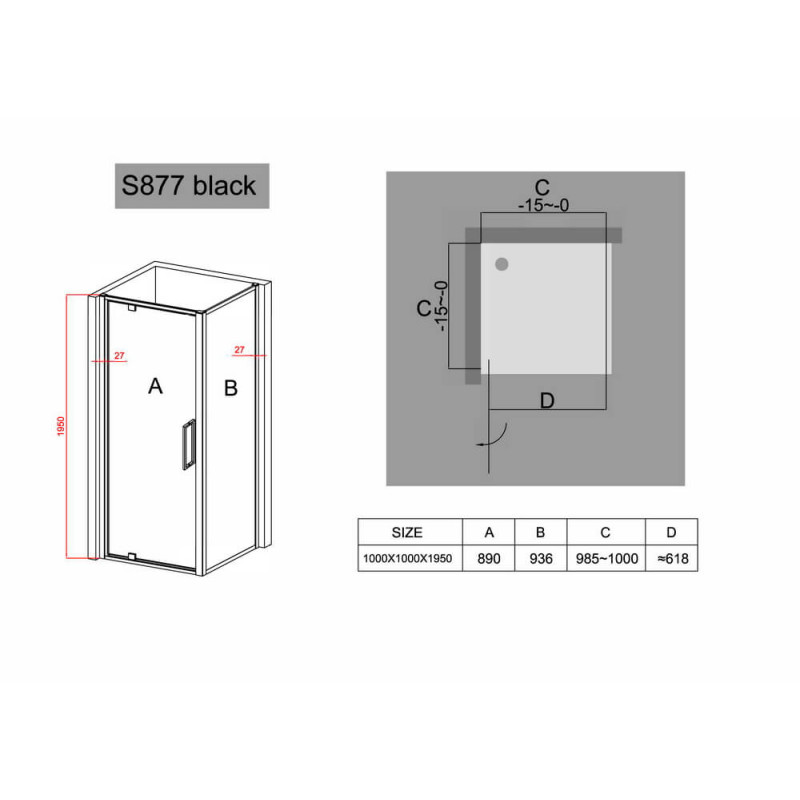 Душевой уголок 100х100 см Black & White Stellar Wind 8771010 прозрачное