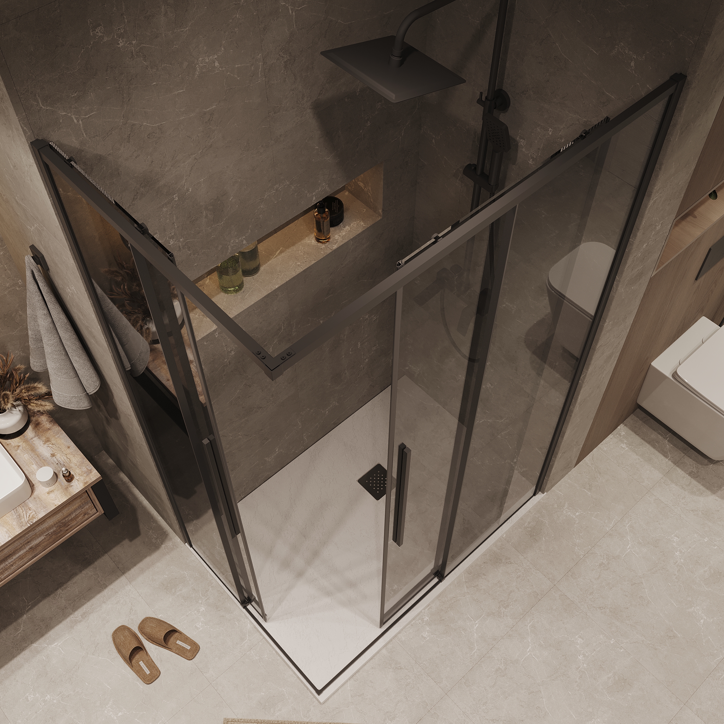 Душевое ограждение Grossman Galaxy 1/2.K33.01.10.21.10-1/2.K33.01.90.21.10 (100х90х195) раздвижная,черный матовый,стекло тонированное,2 места