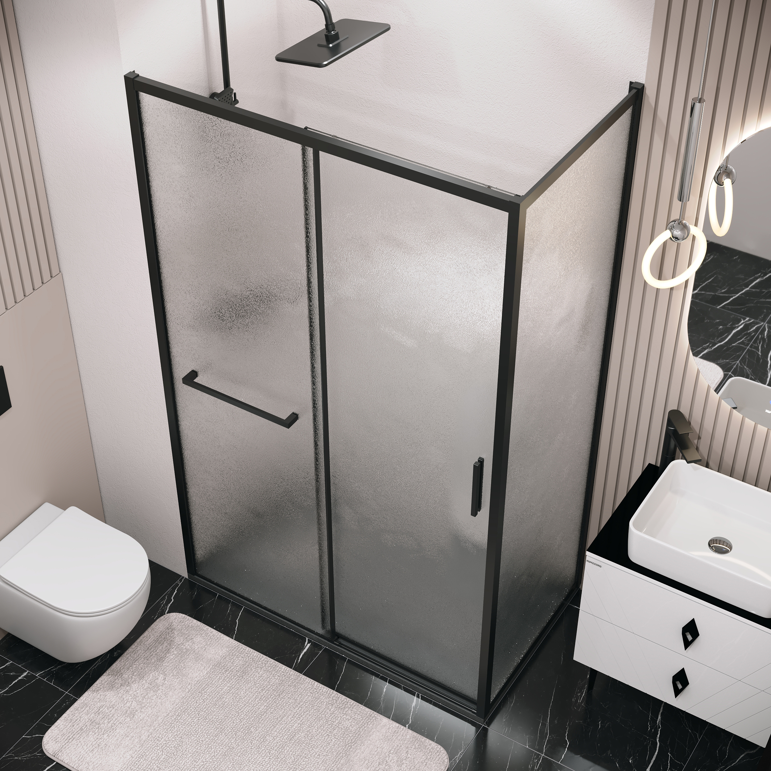 Душевое ограждение Grossman Style 100.K33.05.120.21.02- 200.K33.05.80.21.02 (120х80х195 cm) дверь раздвижная(левая), черный матовый, стекло шиншилла, 2 места: Форма: Прямоугольная