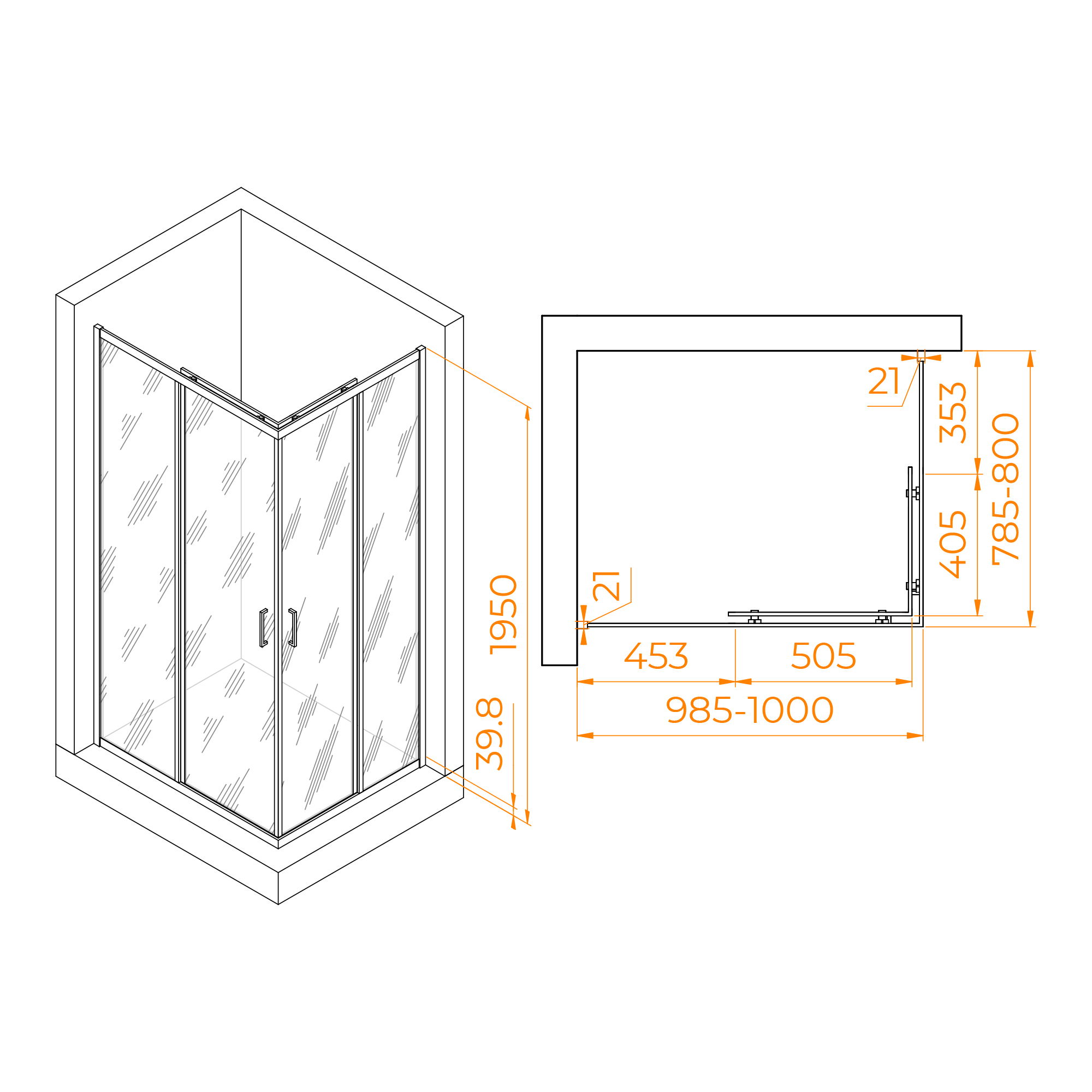 Душевой уголок RGW PA-040B (Матовое-Сатинат, 800x1000)