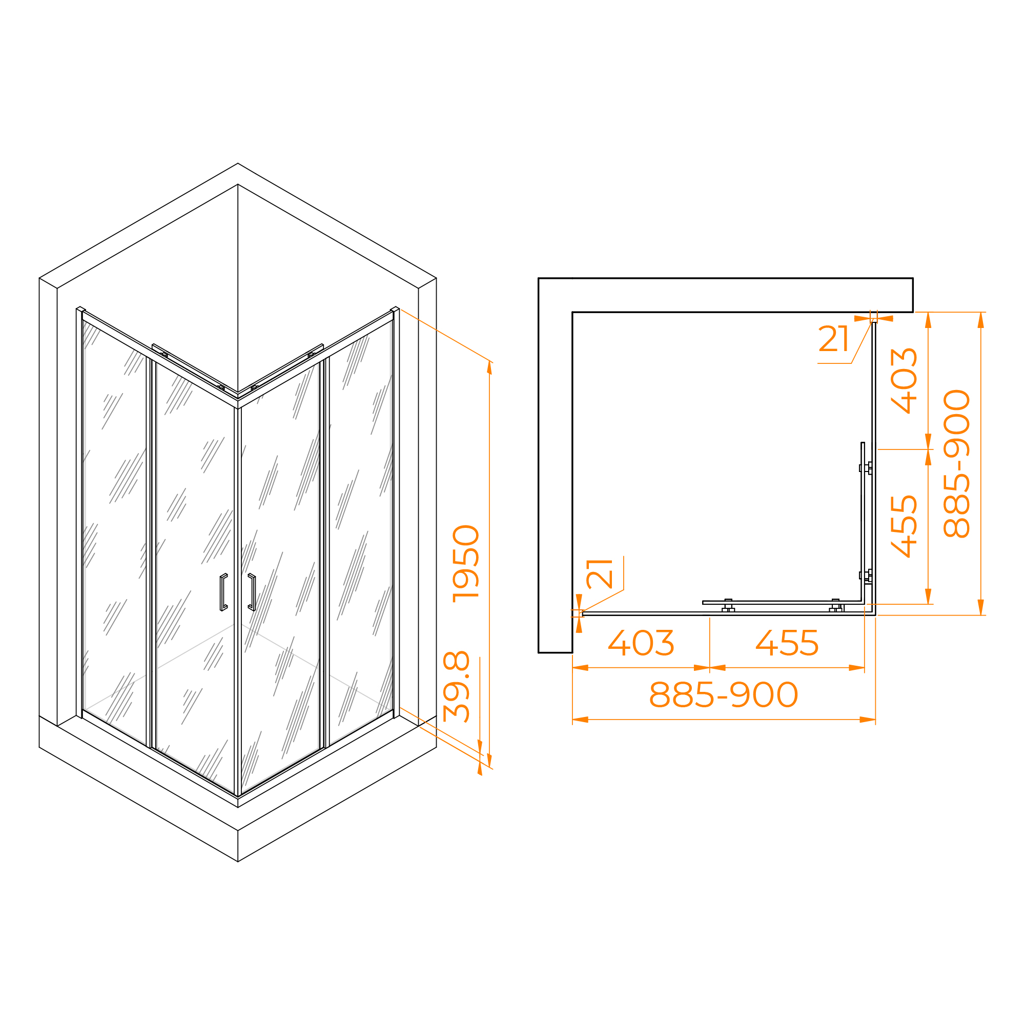 Душевой уголок RGW PA-030B (Матовое-Сатинат, 900x900)