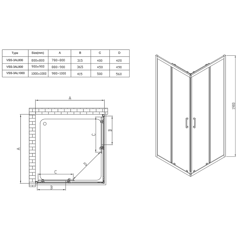 - Размеры (ШхВхД): 1000x1900х1000 мм.