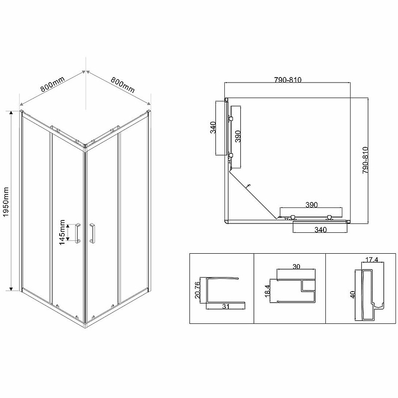 - Размеры (ШхВхД): 810x1950х810 мм.