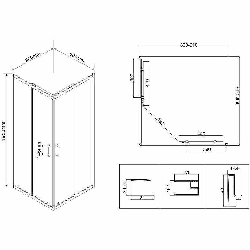 - Размеры (ШхВхД): 910x1950х910 мм.