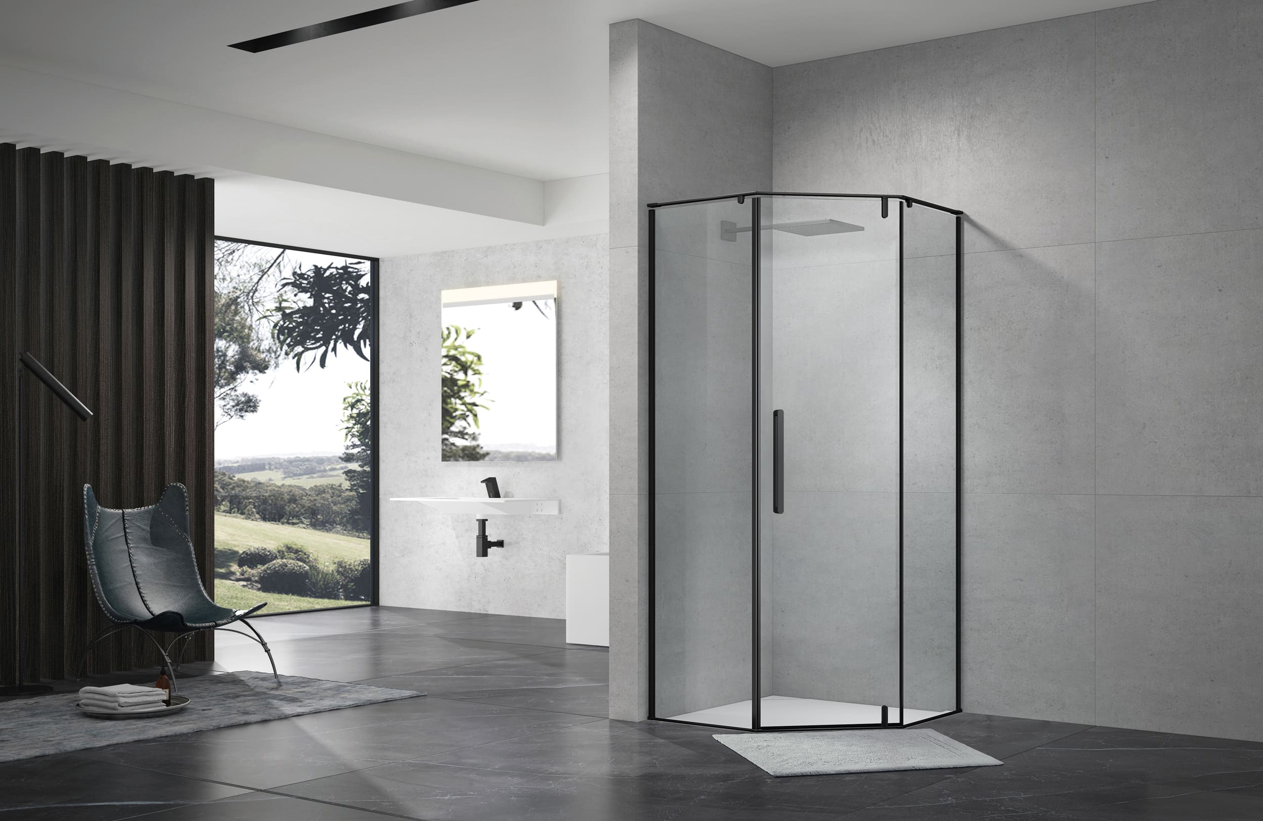 Душевой уголок распашной Terminus Альба 04 1000х1000х2200 трапеция чёрный
