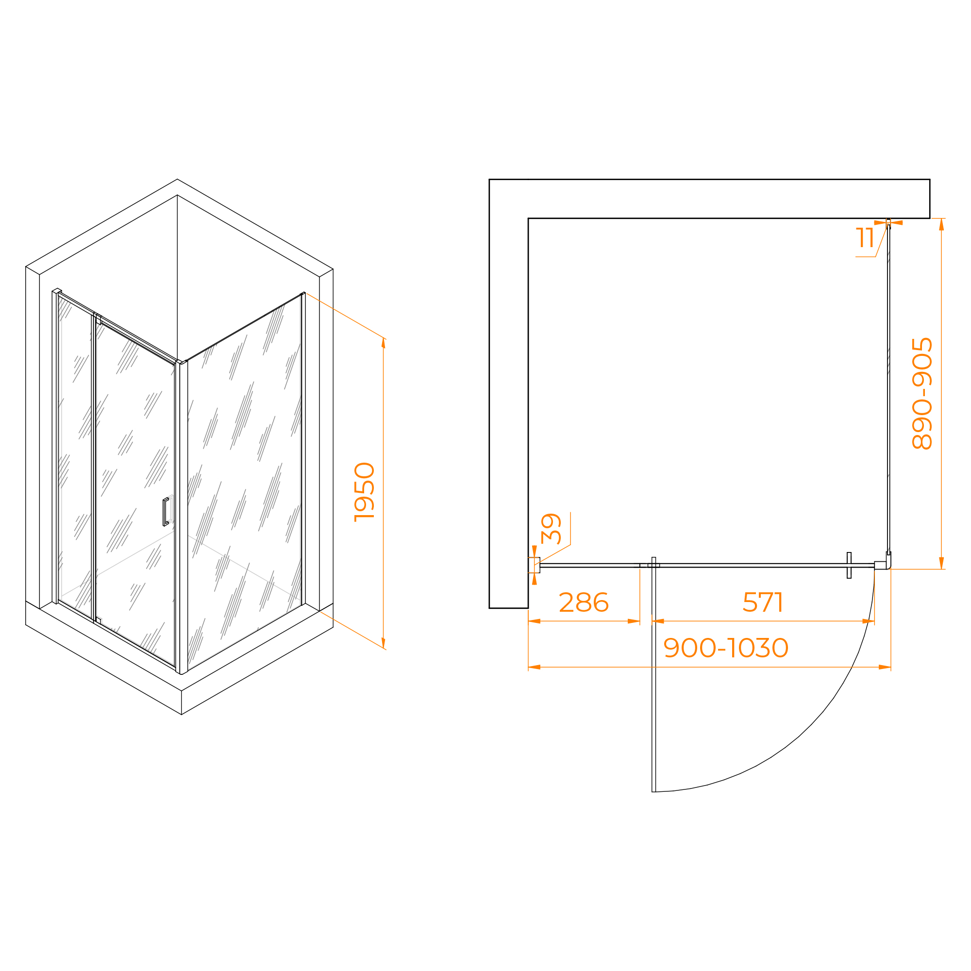 Душевой уголок RGW PA-078B (PA-008B + Z-050-2B) 90* 90*195 профиль Чёрный стекло Прозрачное