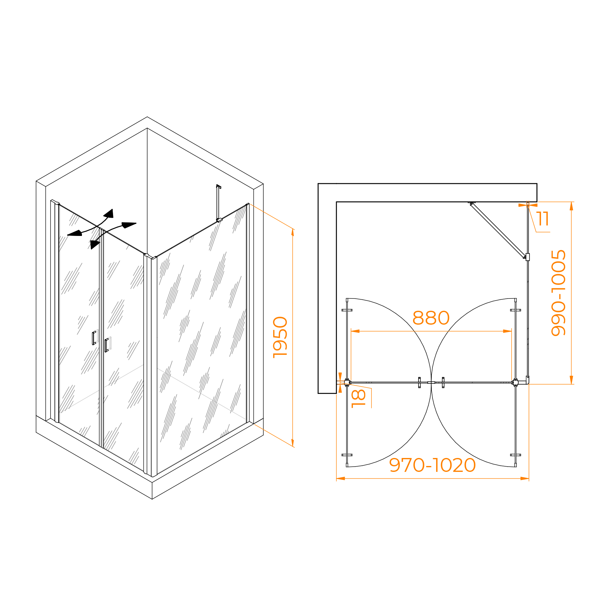 Душевой уголок RGW PA-134B (PA-104B + Z-050-2B + O-204B)