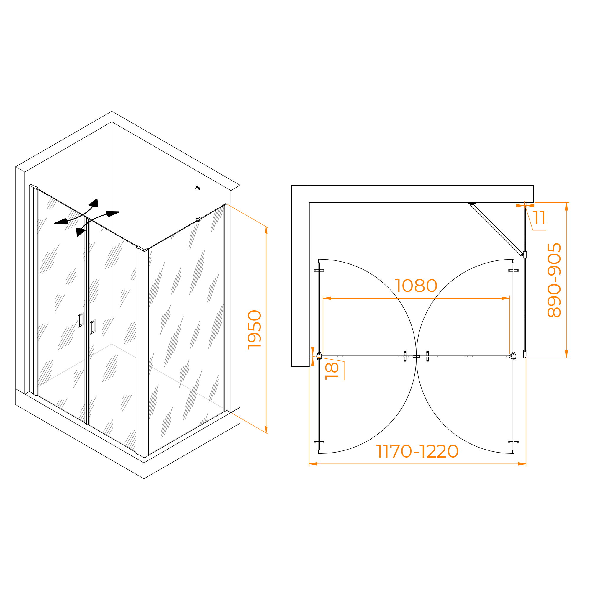Душевой уголок RGW PA-144B (PA-104B + Z-050-2B + O-204B)