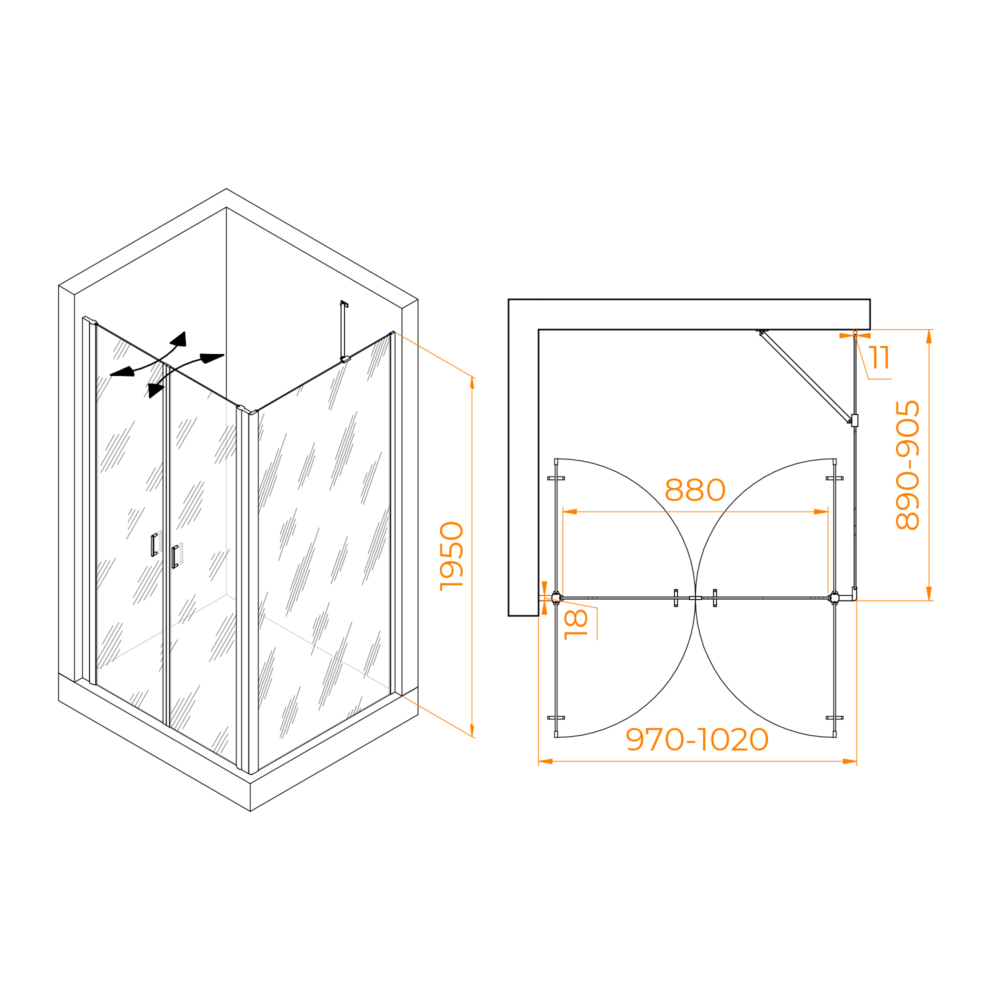 Душевой уголок RGW PA-144B (PA-104B + Z-050-2B + O-204B)