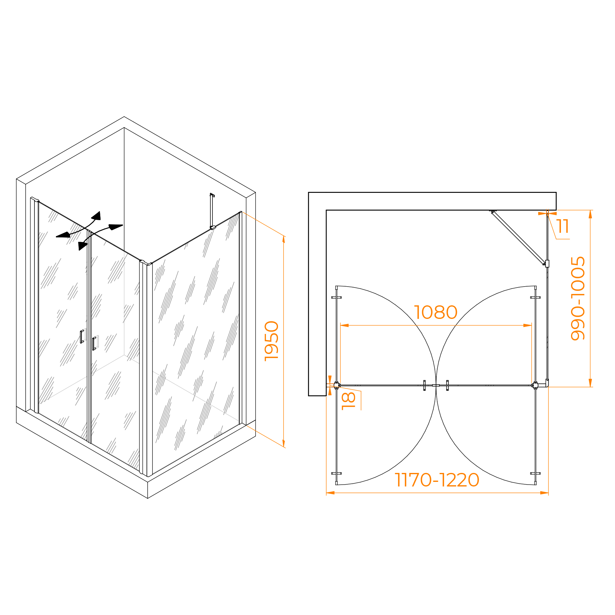 Душевой уголок RGW PA-144B (PA-104B + Z-050-2B + O-204B)