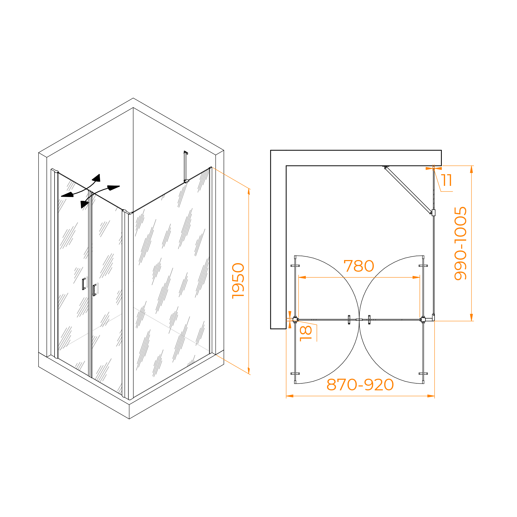 Душевой уголок RGW PA-144B (PA-104B + Z-050-2B + O-204B)
