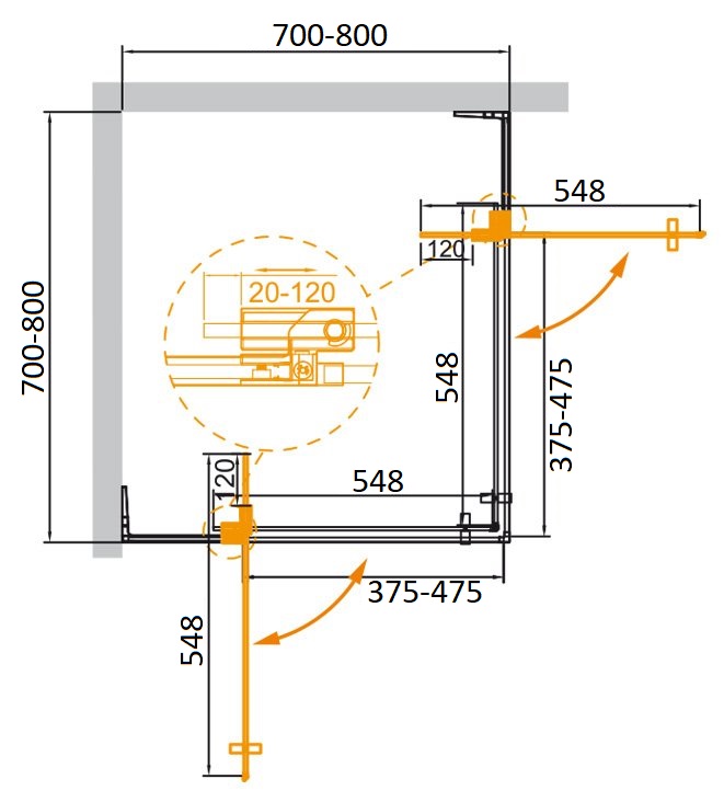 Душевой уголок CEZARES SLIDER-A-2-70/80-C-NERO