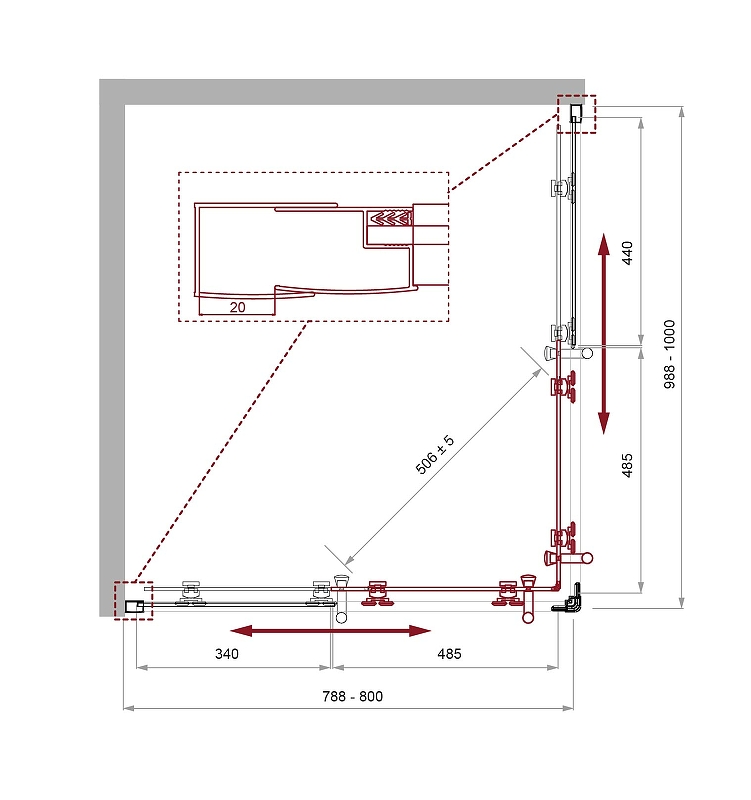 - Регулировка ширины предусмотрена за счет боковых профилей, что позволяет без проблем установить изделие даже при кривизне стен.