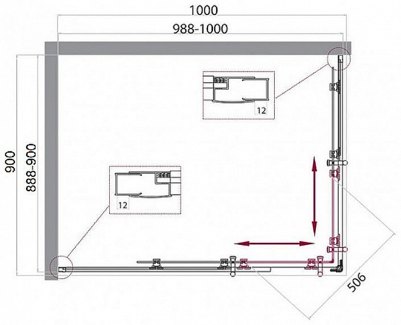 - Габариты с учетом регулировки (ШхВхД): 988-1000х1950х888-900 мм.