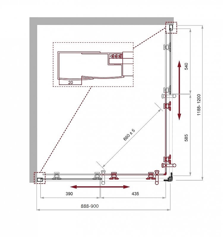 - Регулировка ширины предусмотрена за счет боковых профилей, что позволяет без проблем установить изделие даже при кривизне стен.
