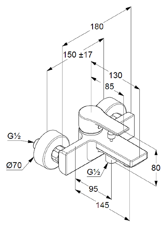 - Отвод для душевого шланга: G 1/2.