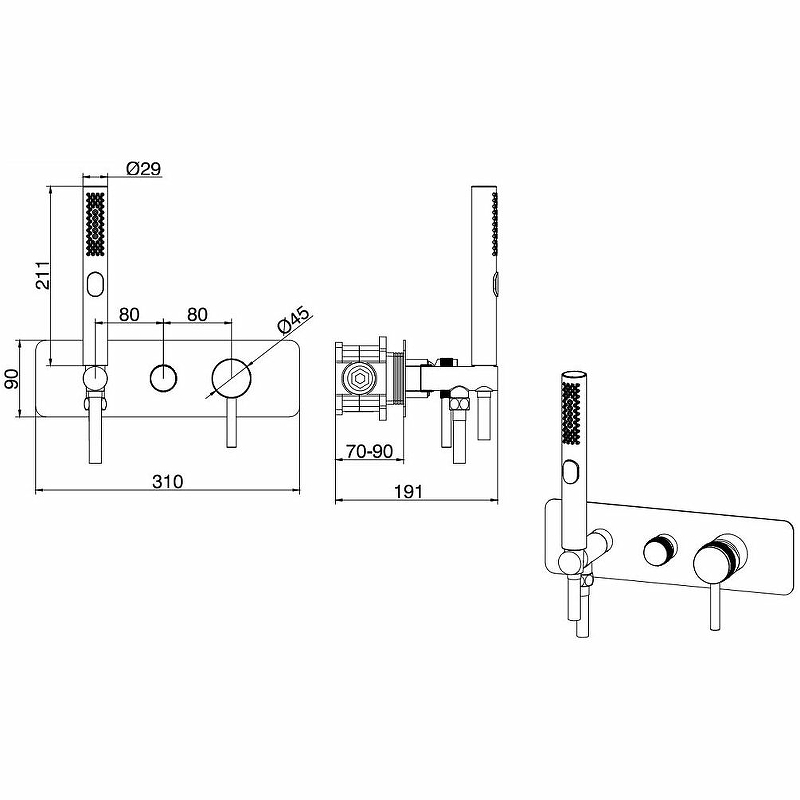 - Габариты ручного душа (ШхВхД): 29х211х29 мм.