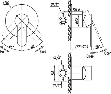- Комплектация Внутренняя и внешняя части смесителя