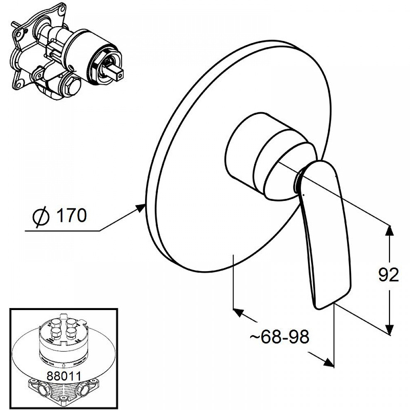 В комплекте поставки: смеситель (внешняя часть), комплект креплений.