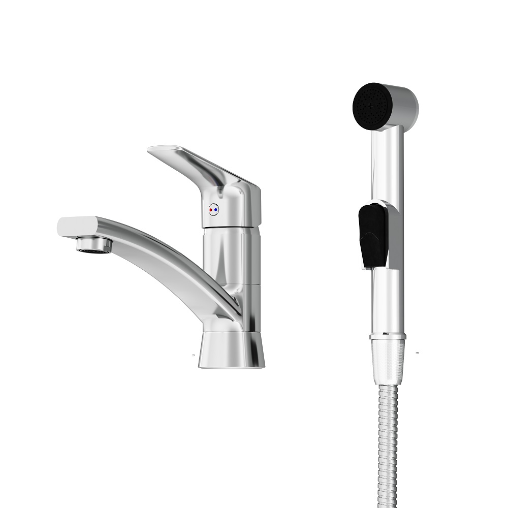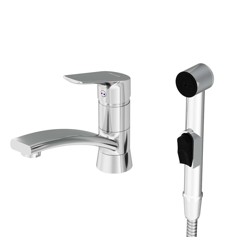 Минималистичный дизайн коллекции Origin Bit находит отражение в простых геометрических формах и плавных линиях. Универсальное решение: смеситель с поворотным изливом обеспечивает дополнительный комфорт при использование а гигиенический душ делает данный набор еще и функциональным.